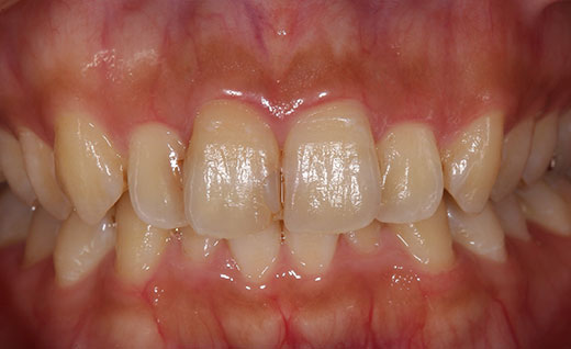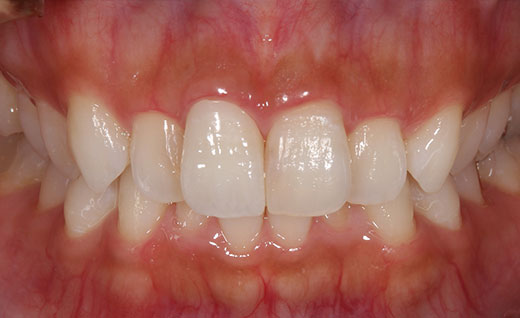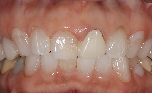 変色した前歯をオールセラミックの被せ物で色味を合わす術例