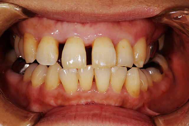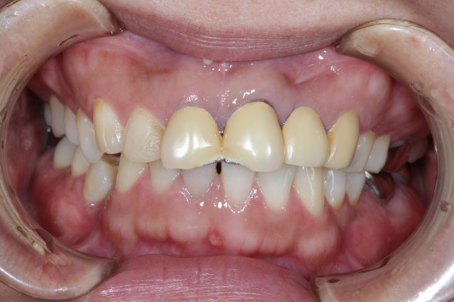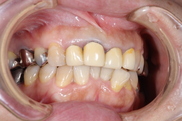 古くなって着色した保険の差し歯を保険内で新しくやり直した症例