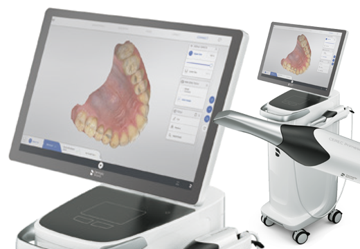 従来の型取りは、ドロドロした印象材を使用するため不快感がありましたが、岡田歯科医院では、最新の口腔内スキャナー「セレック・プライムスキャン」を導入することで、歯を光でスキャンするだけで、高精度の歯型を取得し、このデータをもとに、歯科専用の機械でセラミックを削り出し、短時間で美しいセラミックの詰め物や被せ物を製作します。