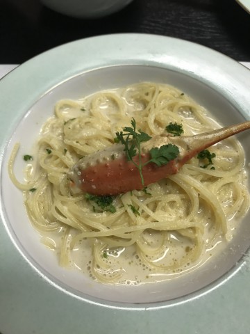 カニパスタにクエのポワレ、最後のシメは雑炊☆