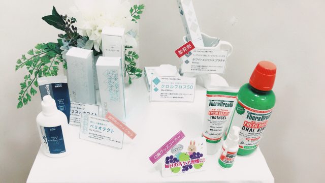 ホワイトエッセンスオリジナル商品の歯ブラシ・フロス・歯磨き粉などボリューム万点のディスプレイです😊