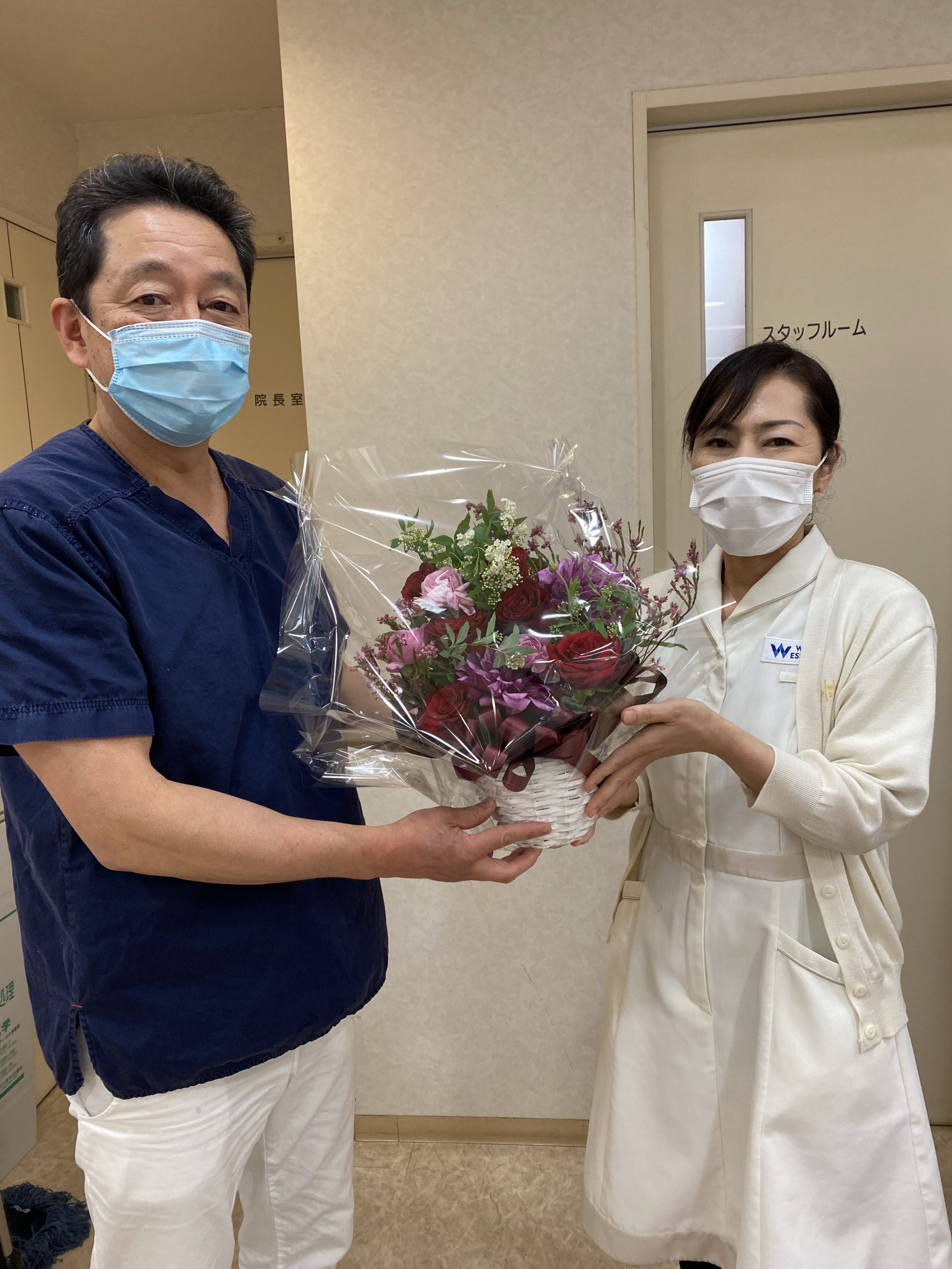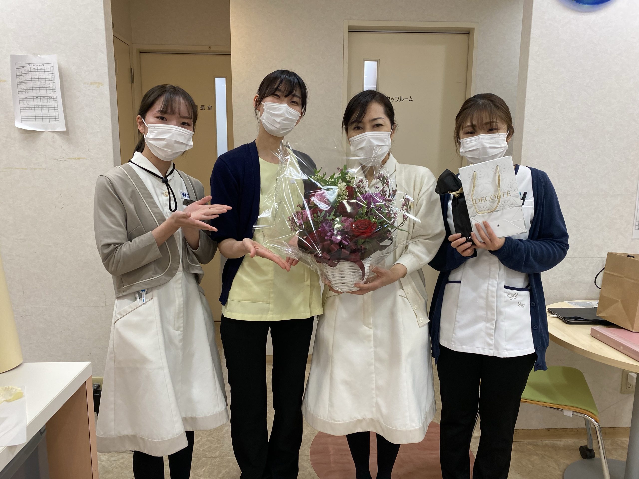 最終日ということでたくさんの患者様からプレゼントをいただいている姿を見て、とても愛されていて信頼されていたんだなと感じました!