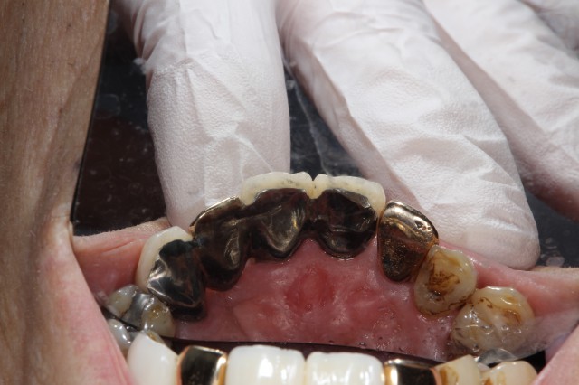変色したかぶせ物を保険のかぶせで作り直した症例