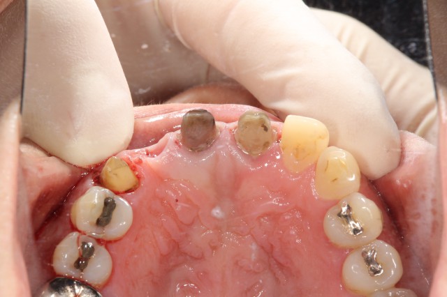 かけたかぶせ物をはずし新しく作り直したかぶせ物を取り付ける準備を行います。