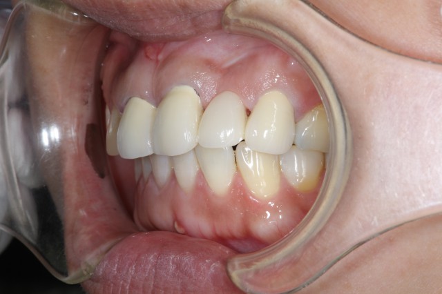 かけて斜めになっていた部分もきれいに隣の歯と整いすこし変色していたかぶせ物は美しくきれいに生まれ変わりました。歯が白くキレイだととても笑顔が素敵になります。かぶせ物の変色や変形などのお悩みの方は是非一度ご相談ください。