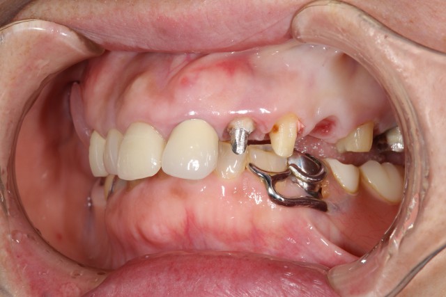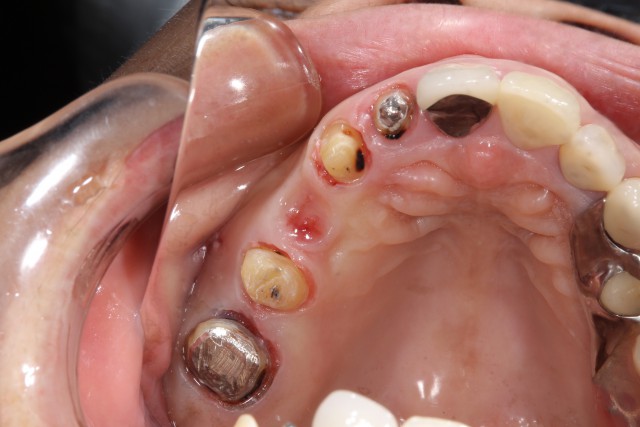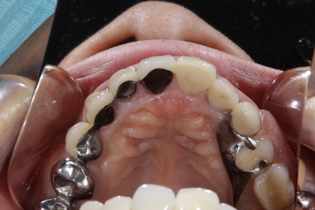 既存の歯を削りセラミックブリッジがしっかりとかぶさるように形成していきます。このように歯根がある場合には被せる土台を作ることができるの複数の歯を一気にキレイに審美回復することができます。