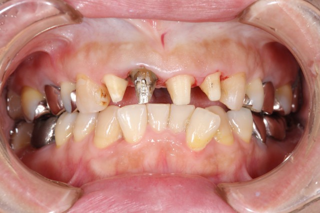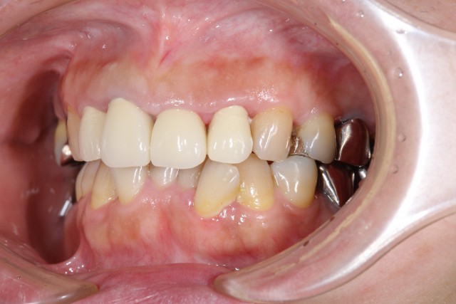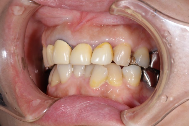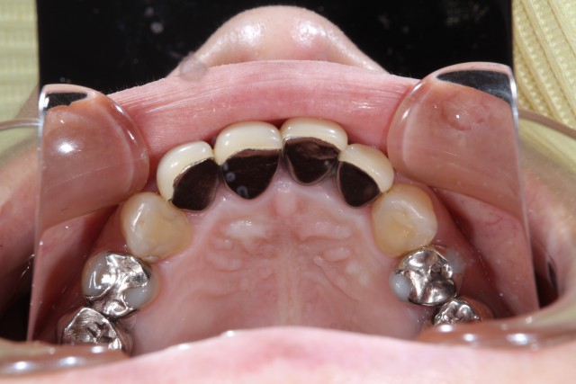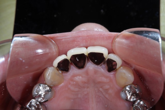 以前も保険が適応される被せ物をされていましたが、前歯3本の変色が気になるということで今回も保険適応での取替えを行いました。