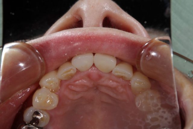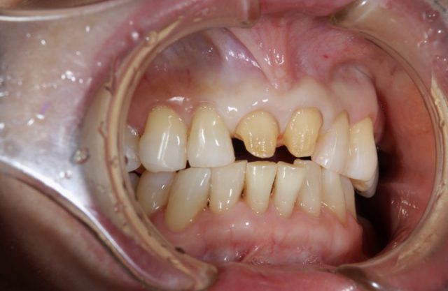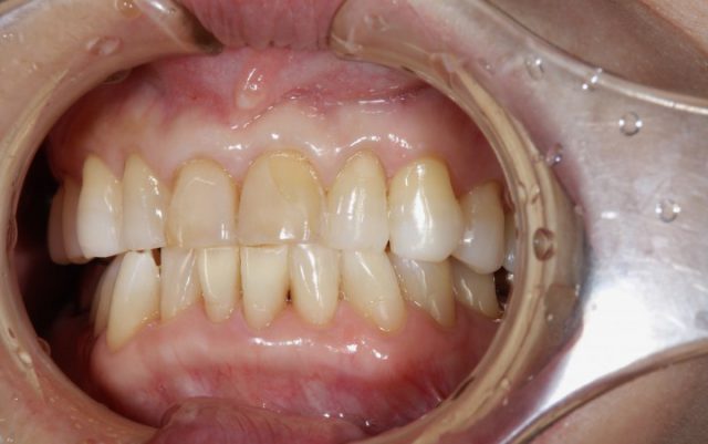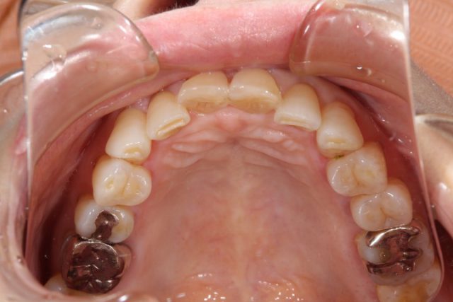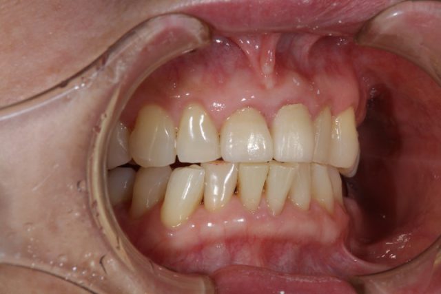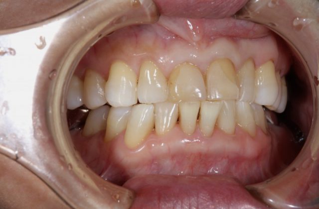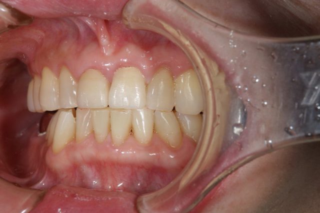 もともと前歯2本に被せものをされていたのですが、黄色く変色してきたことが気になってあまり口をあけることが出来いというお悩みからまわりの歯とも色を合わせやすいオールセラミックによる施術を受けられました。