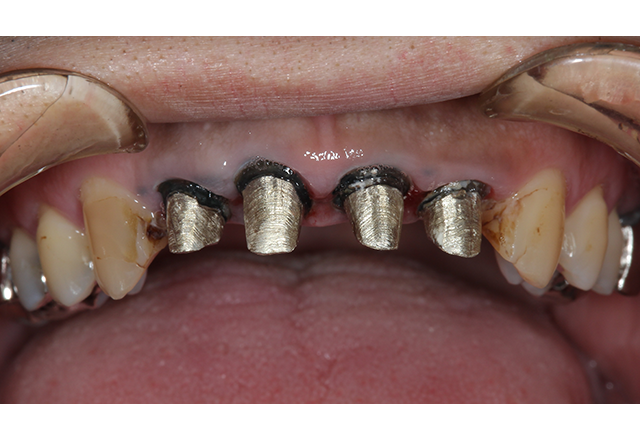 古い差し歯を外し新しい差し歯の形を作り土台を形成していきます。