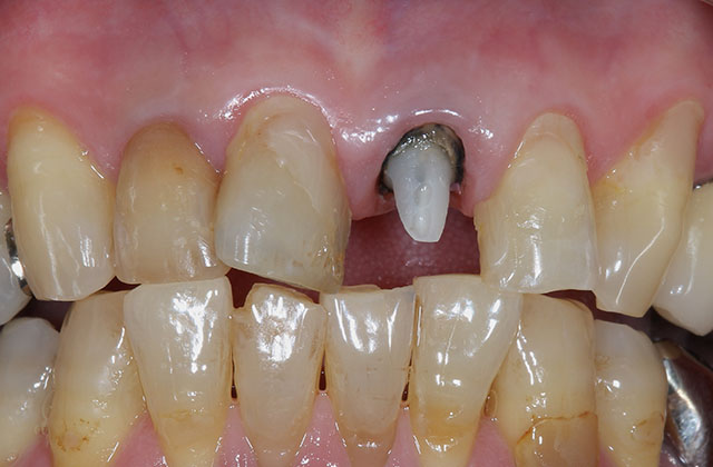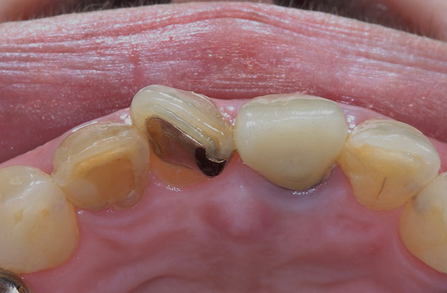 古い状態の被せものを外し新しいものを被せるための土台を形成していきます。