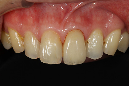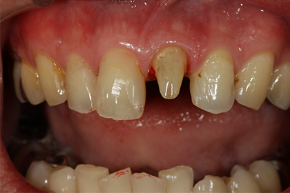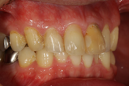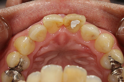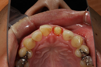 左上中切歯(前歯から1番目)の変色が気になるのでジルコニアでやりかえを希望された症例
