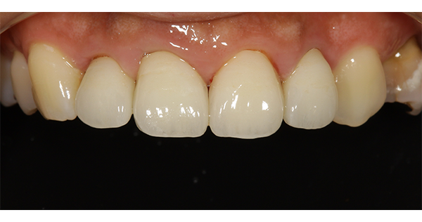 施術後です。どの歯が被せものか、そうでないかわからないくらいの仕上がりとなります。