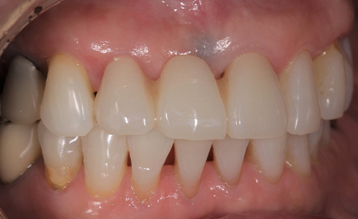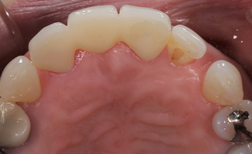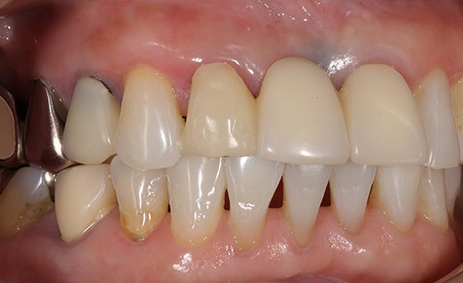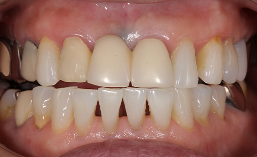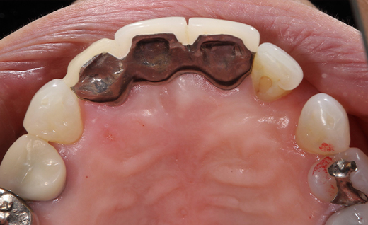 保険適応のブリッジを入れておられたのですが、時の経過とともに他の歯との色味の差が気になるという事で今回ジルコニアのブリッジにしました。