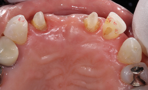 保険適応のブリッジを外し、新しいジルコニアのブリッジをするための土台を形成していきます。