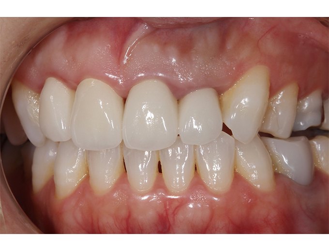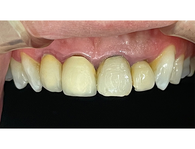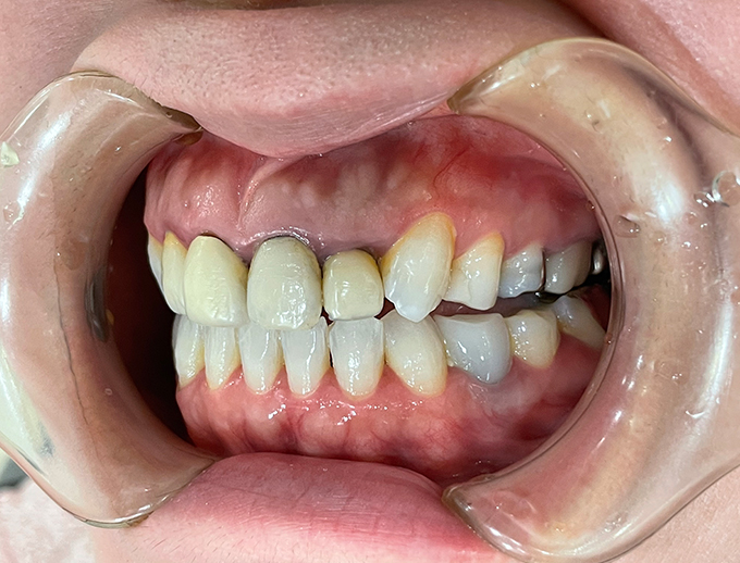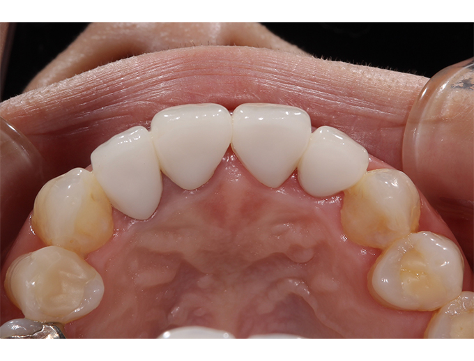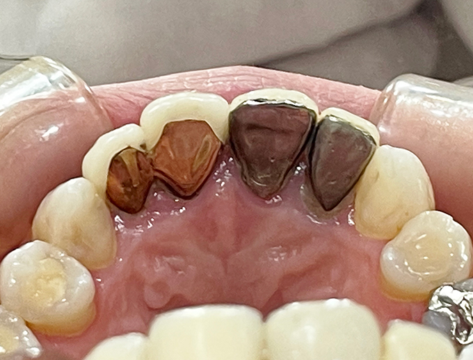 ホワイトニングを施術され白くなり大変喜んでいただいたのですが、上前歯4本の保険の歯との色味に差が出たため今回ジルコニアに変更させていただきました。