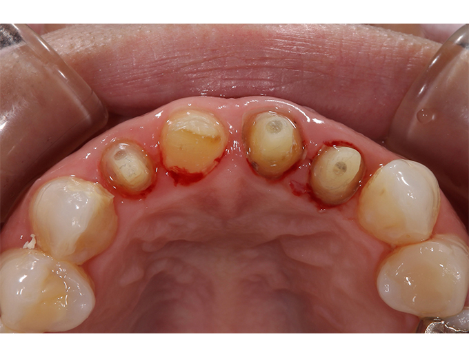 ホワイトニングを施術した部分と今回施術するジルコニアの色味を合わせていきます。色味が決まればジルコニアを被せるための土台を形成していきます。