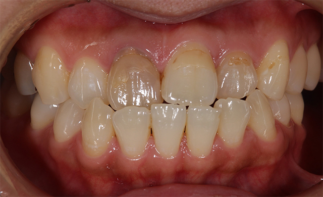 神経をとった前歯が変色してきたのでオールセラミックに変更した術例
