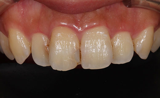 歯のホワイトニングを行われ白くなったのですが、以前に神経を抜いた前歯の色がすこし目立つようになってしまったので、今回オールセラミックで色を合わせさらにその横の歯の虫歯の治療も同時に行いました。