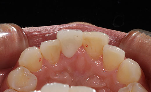 ホワイトニング後に神経のない変色した歯をオールセラミックに変更した術例