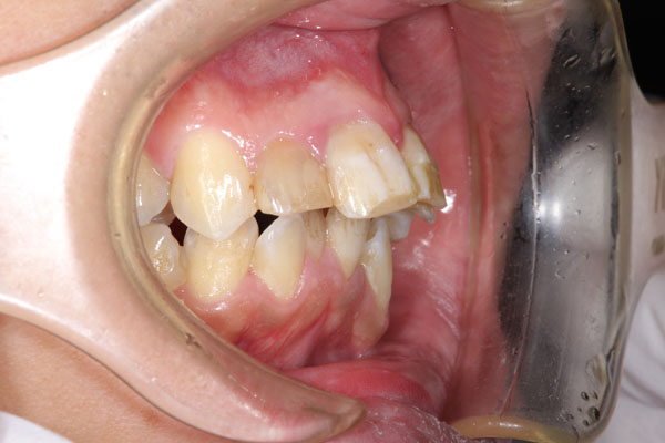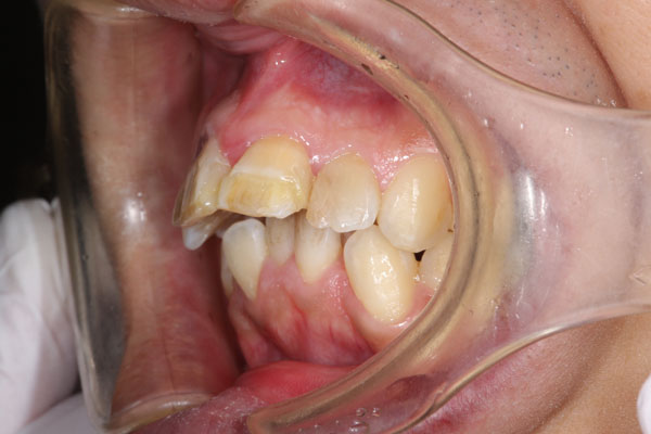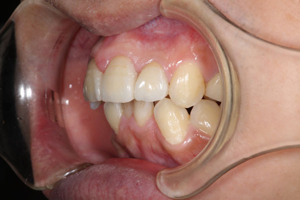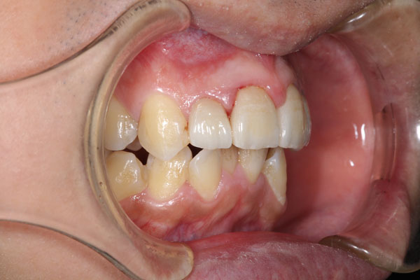 上顎前突した前歯4本をセラミックで審美回復した症例 (右から見た写真)