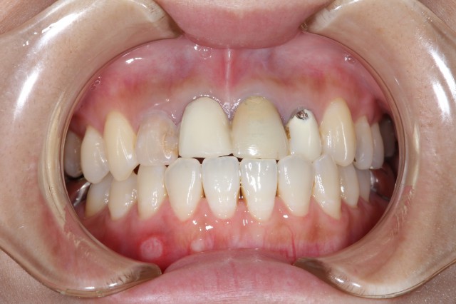 変色してかけている保険のかぶせをセラミックに変えた症例