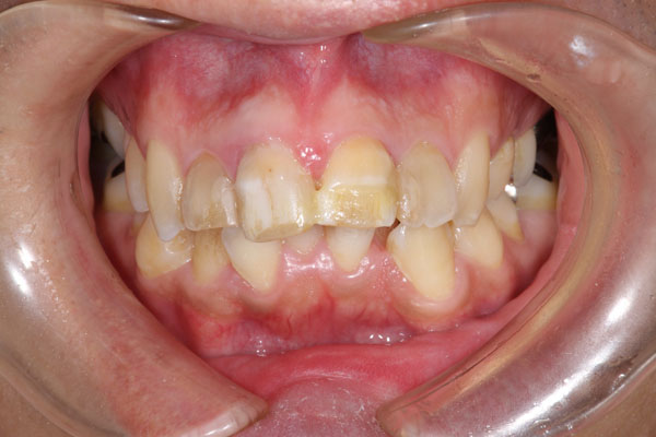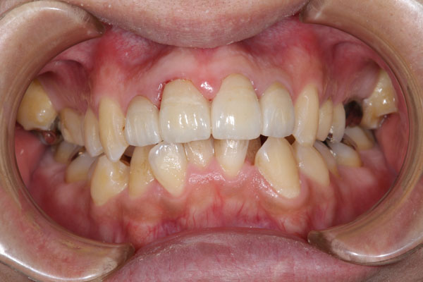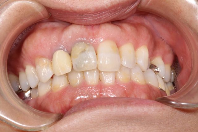 上顎前突した前歯4本をセラミックで審美回復した症例 (正面)